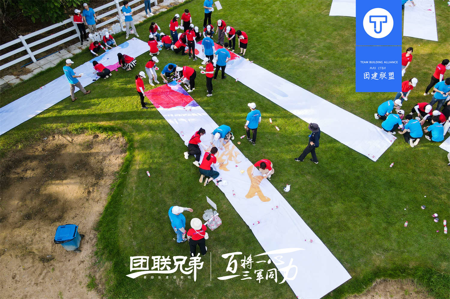 金杜律师所 | 纳斯卡巨画+烧烤 150人主题团建,通过小队的分工合作,各个小队的整体彼此合作,在原有的空白画纸上逐渐把企业文化通过色彩融入其中,从而拼接展现出来。