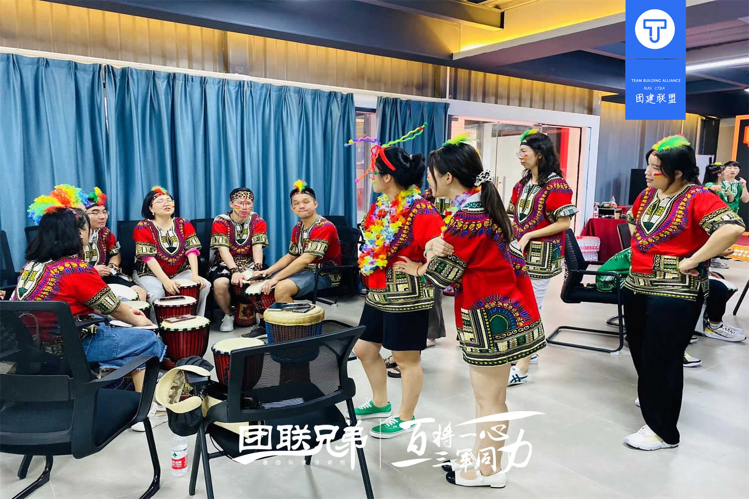 打击乐是最容易引起人类共鸣的音乐,非常适合减压和锻炼手脑协调性正能量的鼓声, 可有效激发参与者的斗志。